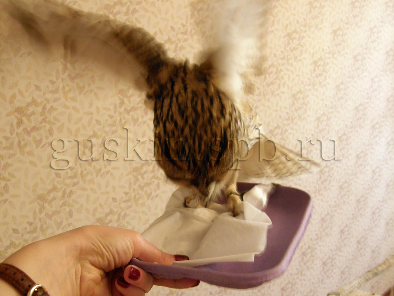 Зная о новых милых привычках совешни, я не могу отказать себе в удовольствии её подразнить. Накрываю мышку салфеткой, да ещё и придерживаю за хвостик, чтобы легко она Анфисе не досталась. В ярости Анфиса, хлопая крыльями, набрасывается на мою руку и изо всех сил кусает пальцы. Хорошо, что силёнок у неё немного.