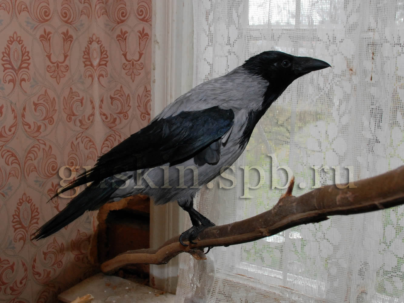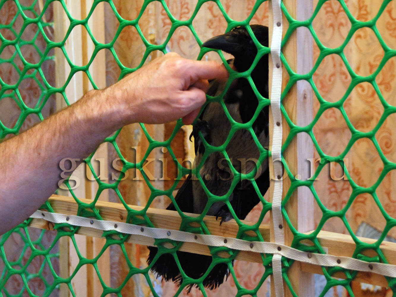 Кстати, Ксюшка совершенно не горит желанием вырваться на свободу. В её вольере есть окошко, на котором она отодвигает занавеску и подглядывает: что там? Очень забавно. Если заметит, что ты на неё смотришь, зановесочку тут же задёргивает (на самом деле, просто бросает). Смешно, что точно так же подглядывает за происходящим в комнате Чарлик, когда мы накрываем его клетку. Ну так вот, можно подумать, что Ксюшка очень хочет за окно, но на самом деле, она просто туда смотрит, как в телевизор. Однажды Славка затаскивал в её вольеру жерди (для присад), она перепугалась и вылетела в дверь вольеры. А в комнате, на минуточку, открыты по летнему времени и дверь, и окно. Но ни дверь, ни окно Ксюшку не заинтересовали; она в панике ломанулась через сетку к собственной же клетке, конечно, не пролезла, но попыток не оставила: так и сидела на сетке, просунув внутрь башку, отчаянно пытаясь развинуть ячею плечами и громко каркая. Оторвать её от сетки удалось с большим трудом.