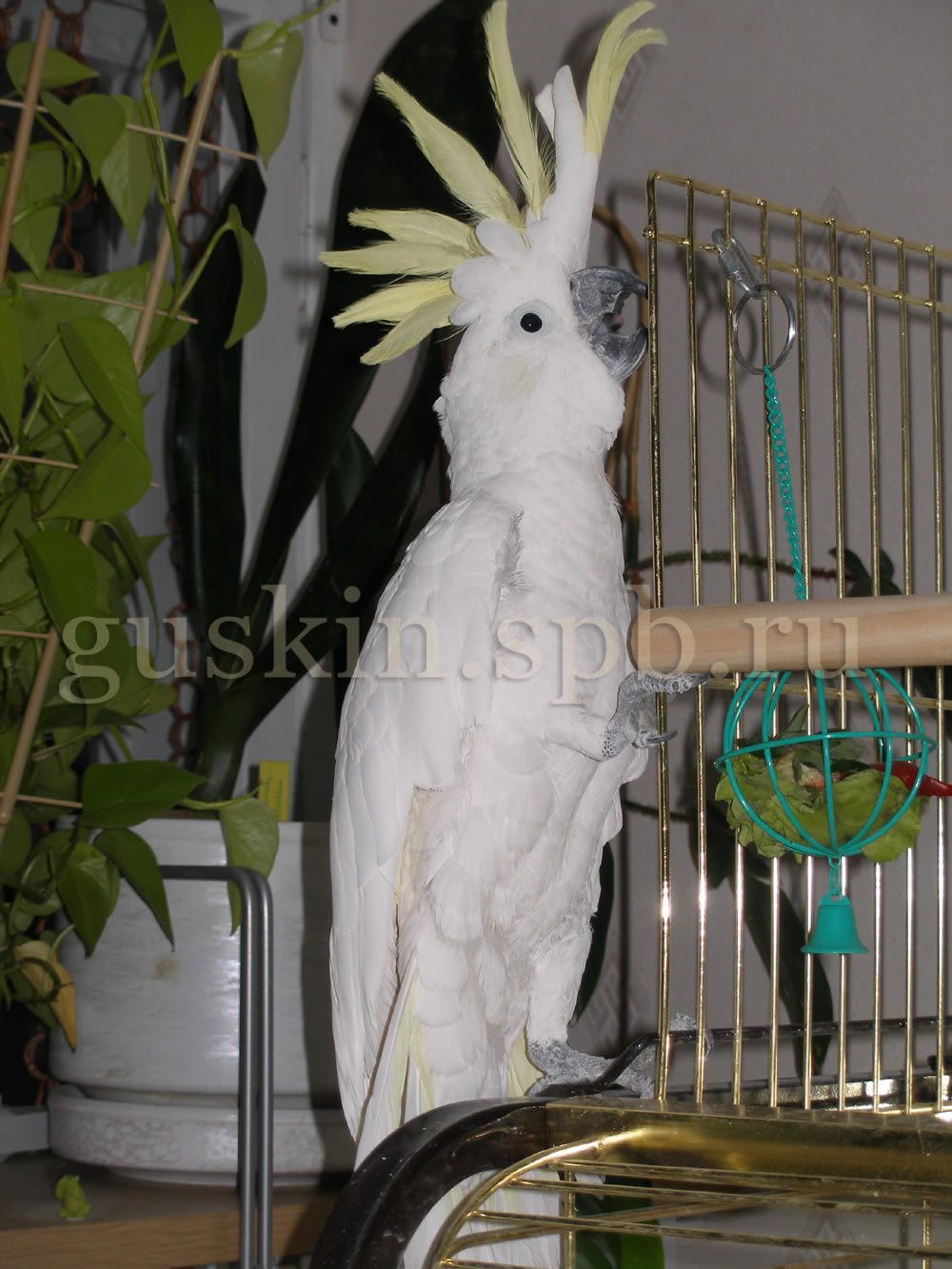 Новый питомец: Брут Первые дни Чарли: Брут в роли "старичка" Как всегда, руководствуясь, в основном, опытом с Брушей, я решила "выдержать" Чарли в клетке несколько недель. С самого начала оказалось, что с Чарликом жить проще, чем с Брутом, потому что при испуге Чарли не орёт, а тихо шипит — как мило и как удобно... Бруша сразу же устроил дедовщину: летал на Чарлину клетку, с наглым видом разглядывал его кормушки (забыв про свои), а когда Чарлик возмутился и поднял хохолок, начал задумчиво грызть лимонно-жёлтые пёрышки, высунувшиеся за решётку... К счастью, хохолок не успел пострадать: я с сожалением прервала фотосессию и прогнала Брушу домой.