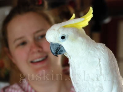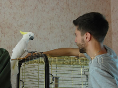 Уже в первый день занятий мой ощипанный балбес сидел у меня на руке! Всё чудо заняло порядка трёх часов напряжённой для всех участников работы.