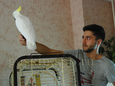 Но волшебник Макс начал на моих глазах творить чудо. Через жалких полчаса Чарлик уже брал у него угощение. Потом в Чарлика буквально начали тыкать палочкой. Что хуже всего — палочкой для суши. Возможно, у Чарлика это вызывало какие-то опасения. Но магия продолжала работать. Ещё 15 минут и куча орехов — и Чарлик уже держался за палочку лапой. И вот впервые оторвался от клетки, доверившись чьей-то доброй воле! Правда, палочку пришлось выбрать понадёжнее. Однако исторические моменты на этом отнюдь не кончились. Чарлик осмелился коснуться магической Максовой руки. И вот уже он сидит на руке! Офигевая от происходящего ещё больше, чем даже я. Это, действительно, фантастика. Доктор Макс вывел Чарлика на руку буквально за час! Всё происходило при мне, никакого насилия не было — только безопасная магия. После такого Чарлику, конечно, дали немного отдохнуть и прийти в себя; он был совершенно шокирован собственной смелостью. А дальше всё стало ещё веселее: ведь Чарлик должен был идти на руку не к Максу, а ко мне... Чтобы немного дезоринтировать птицу, мы вывезли Чарлика вместе с клеткой в прихожую. И там случилось чудо.