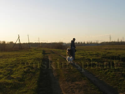 Винсенту же весна по барабану, потому что она уже вторая, а лапы ему моют только перед выставкой — бабушка разрешает ему идти дом вместе с грязью. Однако в связи с весной мы пошли на карьер — а это уже интересно. Как известно, Винсик так и не поплыл (может, в этом году заставим?), но ходит по воде с большим удовольствием. Оказалось, за зиму он ничего не забыл, зашёл в воду и пошлёпал вдоль берега. А за ним пошла и Белка! Правда, где Винсу по колено, Белке уже по уши, но постепенно она более-менее поняла, насколько далеко может зайти. И ходили они по воде вместе.