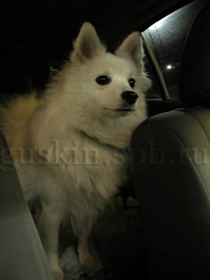 То же самое в машине: всё в порядке, пока хозяева внутри. Если же кто-то вышел — это повод для беспокойства. Куда пошёл? Зачем? Заблудится, потеряется, споткнётся, расшибётся! Белка очень любит хорошо себя вести. В том смысле, что можно очень хорошо себя повести, а потом потребовать за это вкусненькое. Ну посмотрите, она же просто сама невинность, ДАЙТЕ ей за это печенинку!!! Когда нет никакой надежды получить вкусное, Белка бродит в задумчивости по квартире или ковыряет игрушки. Мягкие игрушки хороши для потрошения днём. Резиновые — для пищания после полуночи. Ковырять игрушки, а также грызть косточки, очень удобно на «лежаке». Правда, ночью лежак превращается в накидки на клетки попугаев, но днём лежак хоть куда. Шерсть из Белки сейчас лезет огромными клоками, но это пустяки. Даже такая, изрядно полысевшая, она милашка. Разве нет? 15 октября 2007