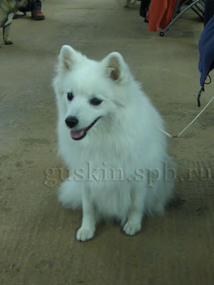 Японских шпицев было заявлено всего четыре, а по факту в ринг вышло вообще три: Noblewhite King Of Hearts (кобель, открытый класс), Балтик Лайн Зарина и наша Agrarium Qiabel Of Accel (обе — промежуточный класс). Так что для получения КЧК нам было достаточно выиграть класс, что мы и сделали. Я перед рингом заявила, что если Белка проиграет класс, я с ней вообще больше на выставки не пойду. Вот Белочка и постаралась показаться получше. Вика передала нам слова эксперта: «У вас очень красивая собака, поздравляю!» — жаль только, фотографий получилось очень мало, так как я опять изо всех сил пряталась от Белки.