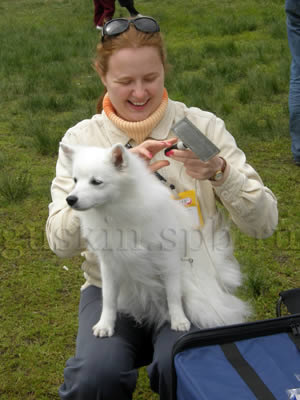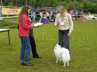 Мы, как всегда, были последние по каталогу (так, что судья даже забыла про нас и принялась за бутерброды). Вышли закоченевшие, начинался дождик. Судья посмотрела нас со всех сторон и сказала: «Отлично, но я не знаю, как вам дать титул, если вы одни в породе». Я честно ответила, что нам этот КЧК не очень нужен, так что мы не обидимся, если нам его не дадут. С тем и вернулись с ринга.