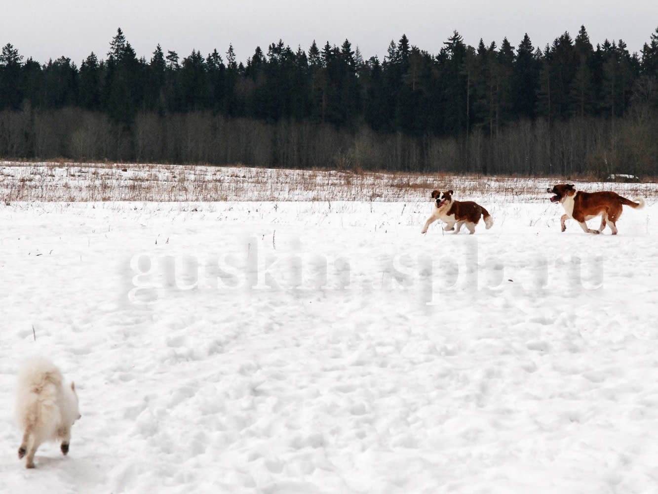 В середине января наша заводчица, Наташа Озерянская, пригласила Винсика принять участие в загородном сенбернарском слёте. Винс милостиво принял приглашение, а мы с Белкой решили примазаться к его царственной особе.