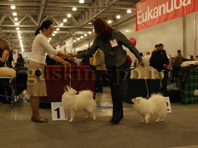 Ничего особенного от Евразии в этом году нам нужно не было. CACIB из Москвы у нас уже был (получили на России-2008). Готовясь к Евразии, ставила себе и Белочке главную цель: 2xCACIB. Сравнение на ЛПП была готова проиграть Jasam's Golden Son Of Silver Bоy. Не буду пытаться сохранить интригу: Белка выполнила точно то, что от неё требовалось.
