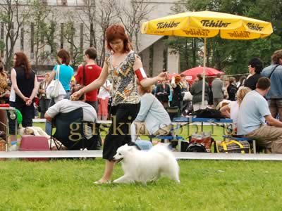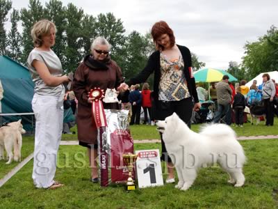 Конечно, организаторы и участники шоу были от всего этого не восторге. Конечно, владельцы самоедов были очень недовольны экспертизой. Конечно, оказалось, что судья не разбирается в европейских самоедах. Бедная Аннелла Купер, не пригласят её больше на наши выставки. Юмор ситуации в том, что Хелми как раз очень «английская» собака — уж никак не американского типа. Впрочем, на выставках такая реакция — обычное и даже нормальное дело, а мне кажется, очень здорово, когда в выставке принимают участие иностранные собаки высокого класса — а то, что Хелми высококлассная собака, она доказала ещё и на цацибовских рингах, поэтому никак нельзя считать её победу случайной. Надеюсь, постепенно и другие наши монопородки начнут привлекать иностранных экспонентов.