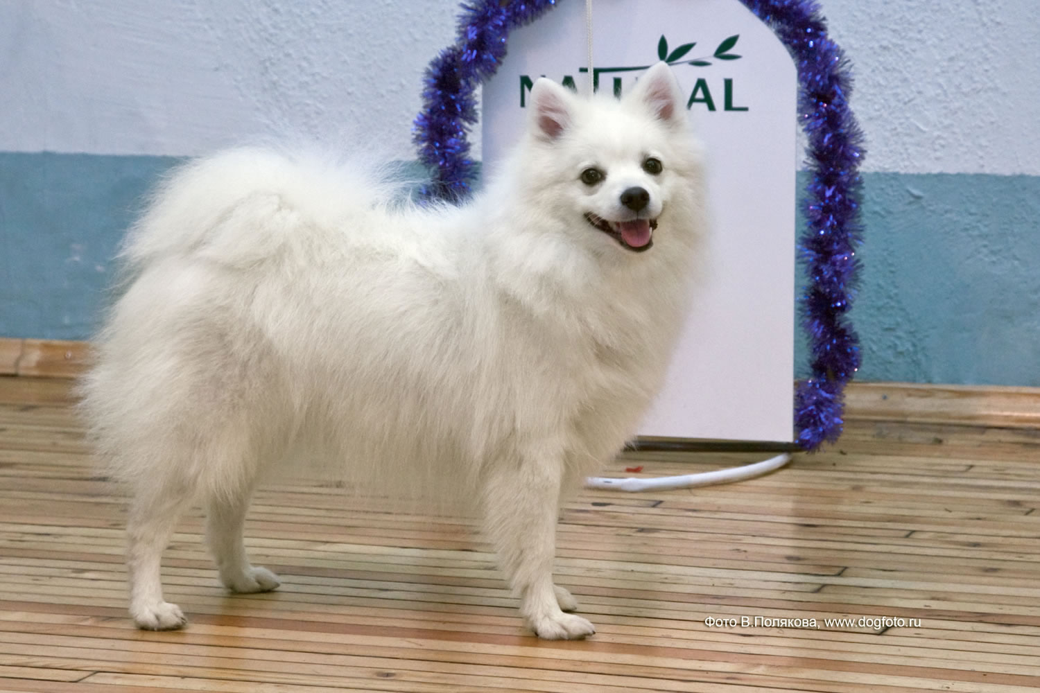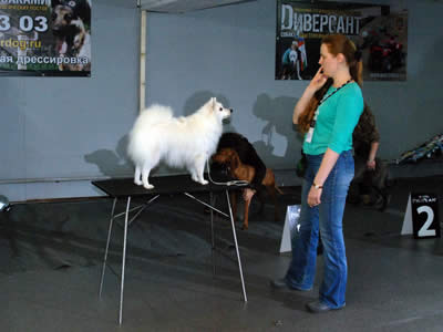 В предварительном каталоге обнаружила конкурентку, японского шпица из Финляндии (импорт Бразилия)! Я видела её на осеннем цацибе и, конечно, не могла позволить ей выиграть без боя! Тем более шансы победить у Белки были очень приличные. Потащились за справкой...