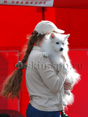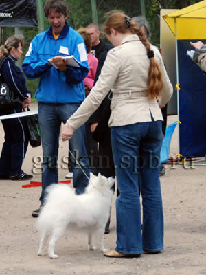 Потом он посмотрел на Белку и сказал, что у японских шпицев другая шерсть, более мягкая, чем у немецких. Мне стало стыдно. Белке надоело слушать этого громогласного дядю, и она решила клянчить кусочек более активно. Потом эксперт наконец-то ощупал собаку, заглянул в пасть и очень удивился, что у неё комплект. Пытался найти яйца; потом долго шутил, почему их нет. Когда мы показывали движения, эксперт нас постоянно подгонял. Я знала, что Белка отлично умеет бежать рысью с высокой скоростью, поэтому смело разгонялась. Белка тоже смело разгонялась и, надеюсь, показала себя с лучшей стороны. Но после пробежки она ужасно развеселилась, принялась прыгать и лезть обниматься, и мне не удавалось поставить её в стойку ни на секунду. Одним словом, позорище, а ещё чемпионка.