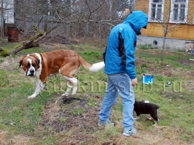 Двор же стал Яшминым царством. Винс это признал и смирился. Всё-таки золотая у нас собака, сенбернар Винсент Вега. Надеюсь, Яшму и дальше по жизни будет сопровождать такое бережное отношение, какое выказывает к ней Винс... А продолжение следовало…. 10 июня 2011