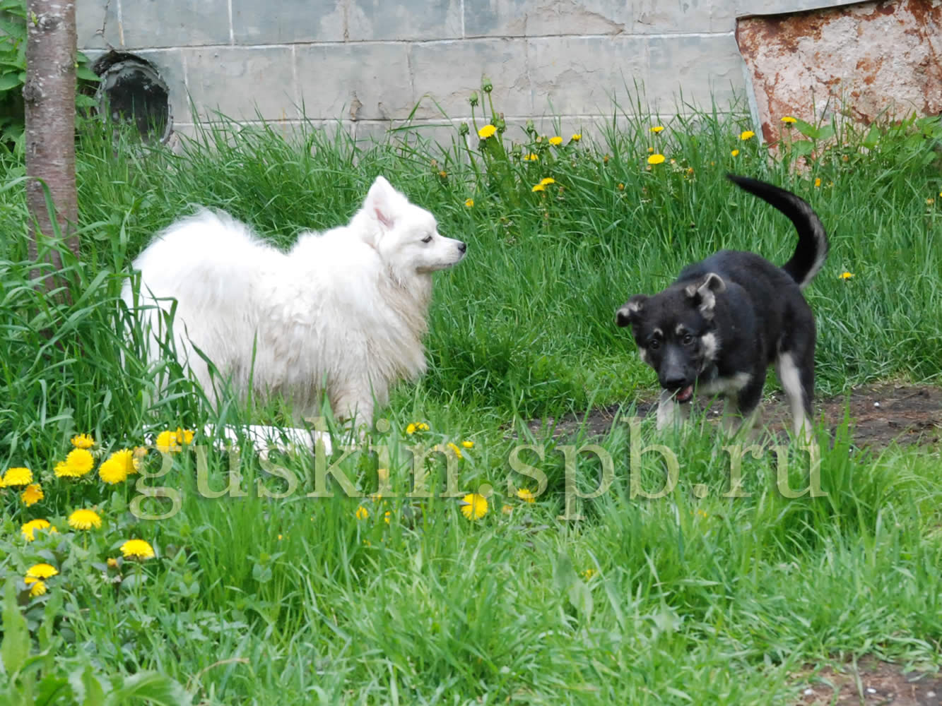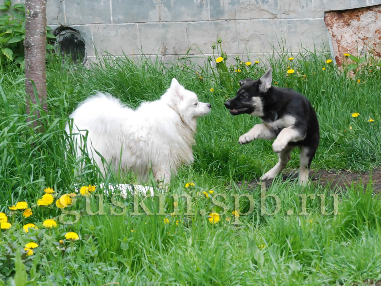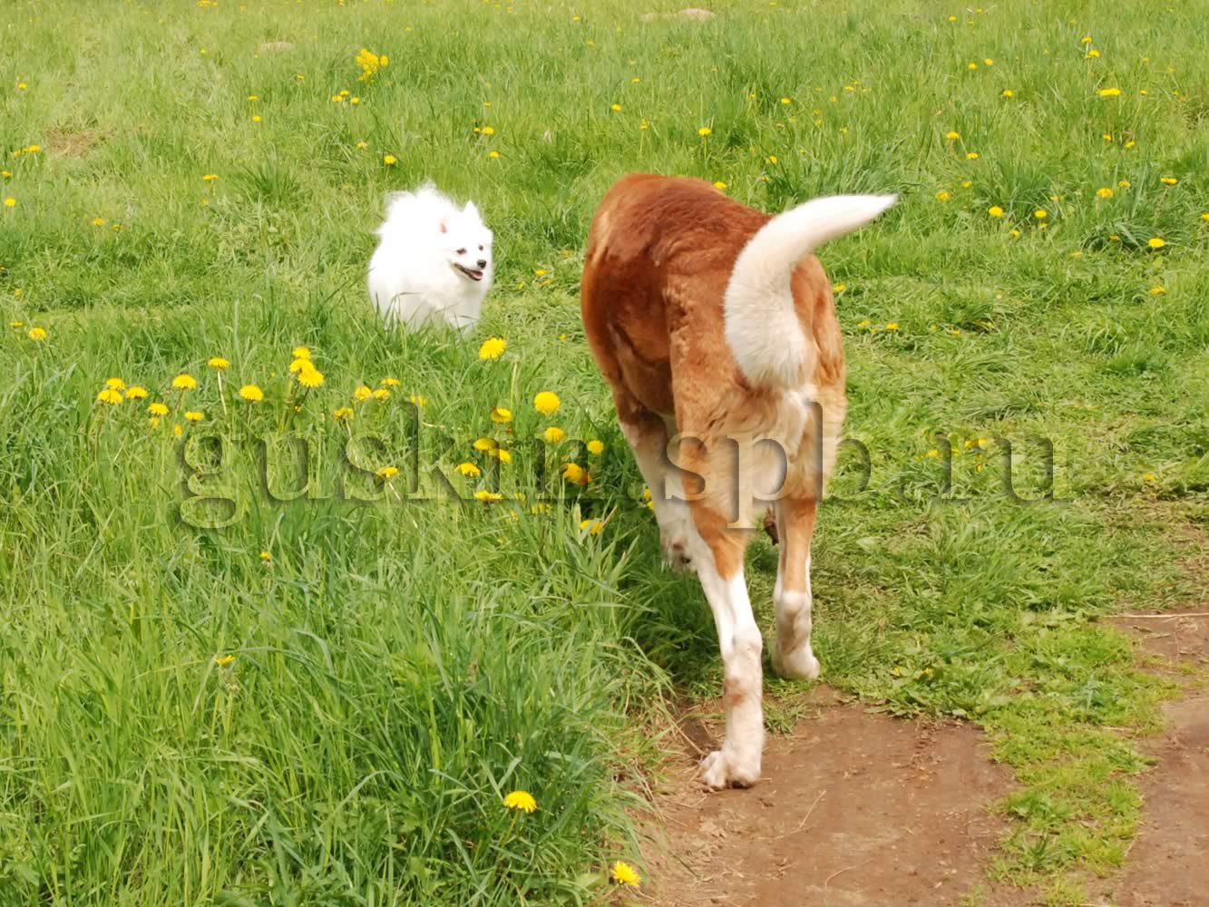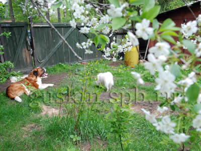 Теперь можно было идти и в лес, хоть в самое болото. Домой никто не торопился, а уж подавно Винсик, который на прогулке отдыхал от Яшмы (всё ещё не получившей всех прививок). Когда мы, наконец, вернулись домой, Винс не хотел идти к крыльцу, решил затаиться перед домом, подальше от нашего чёрного чудища.