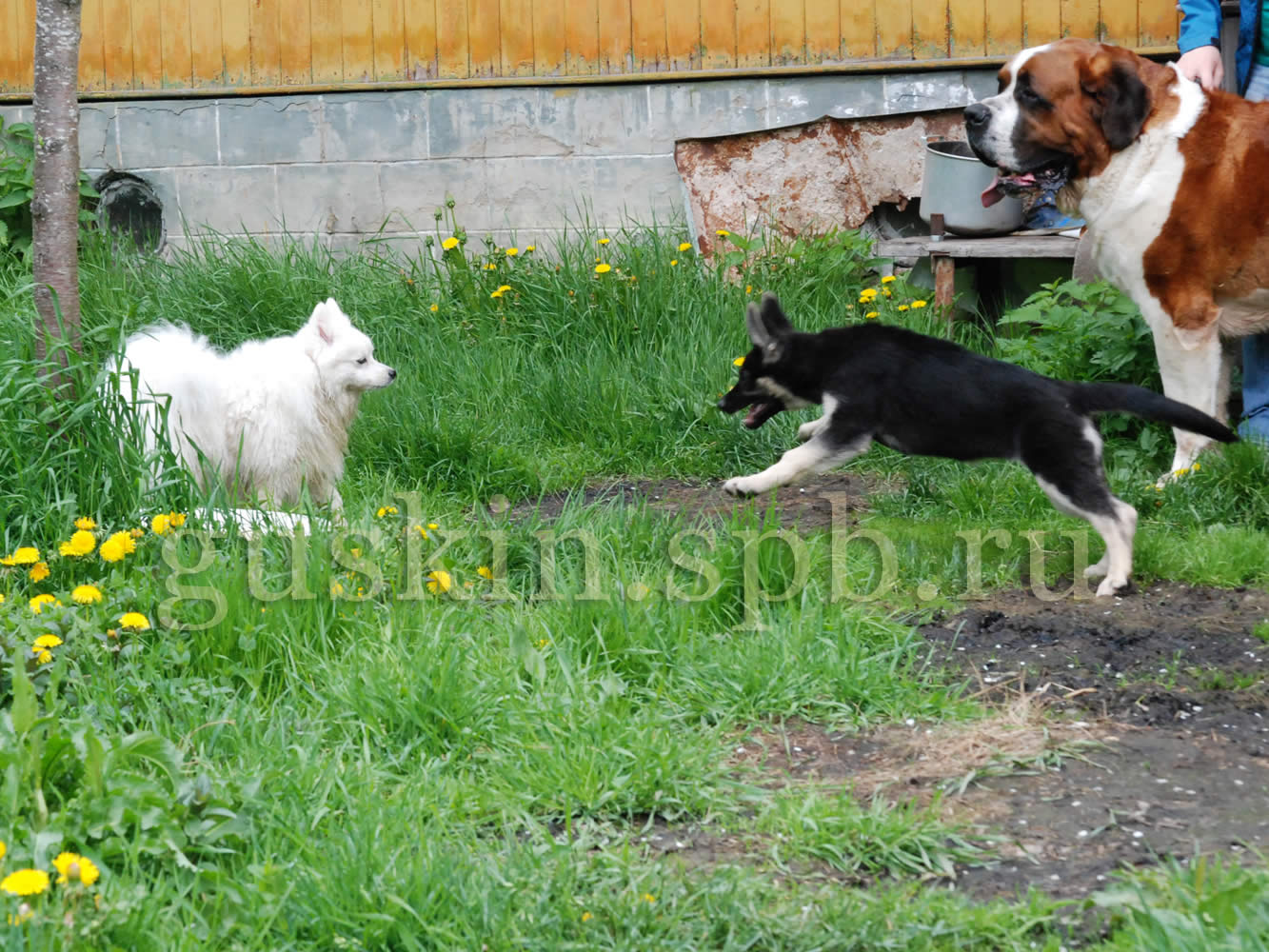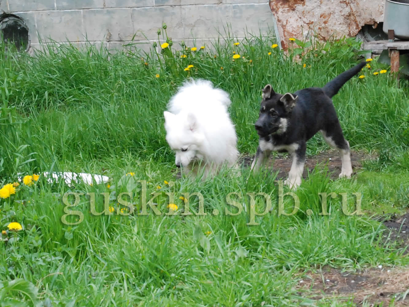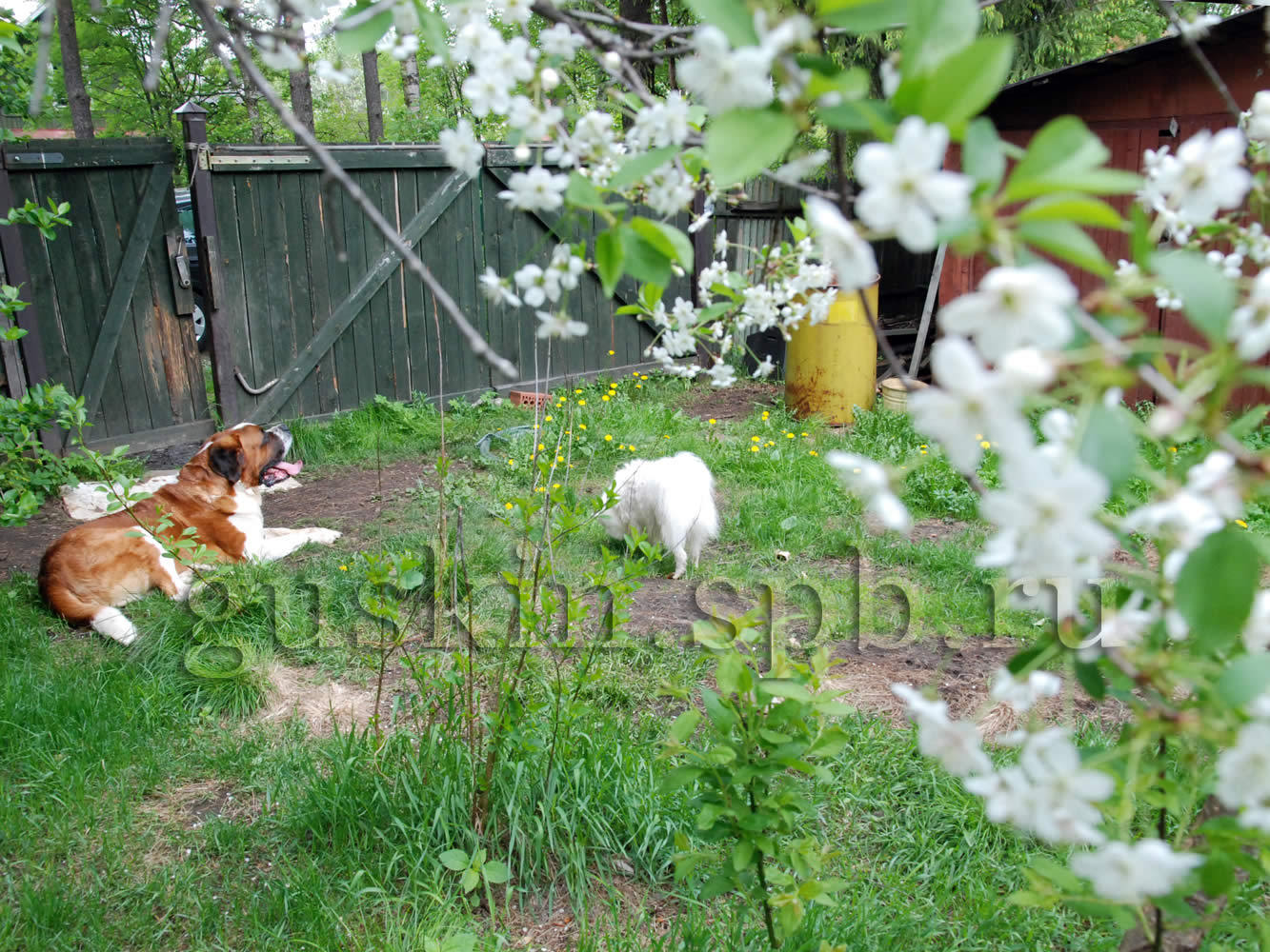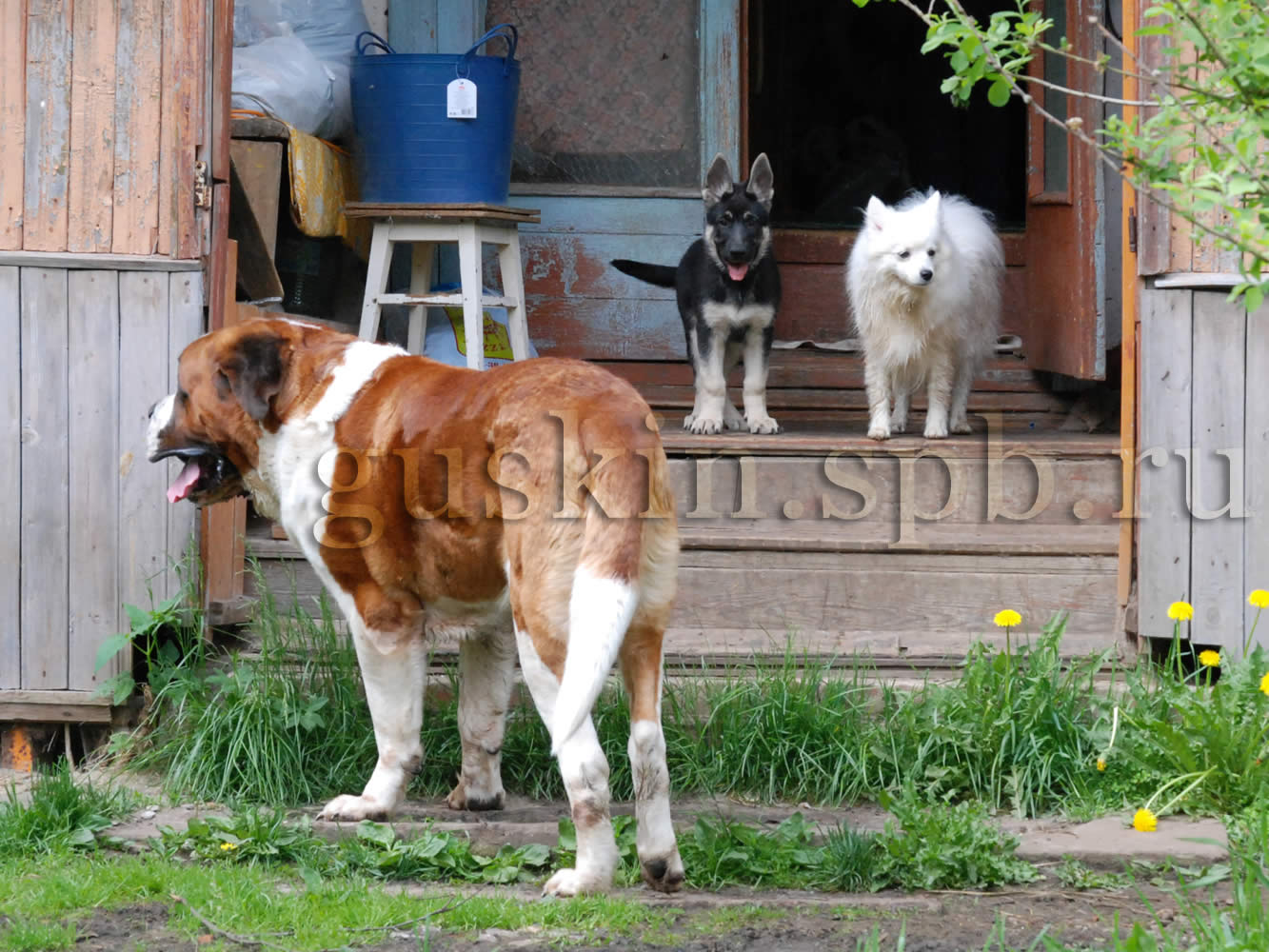 Теперь можно было идти и в лес, хоть в самое болото. Домой никто не торопился, а уж подавно Винсик, который на прогулке отдыхал от Яшмы (всё ещё не получившей всех прививок). Когда мы, наконец, вернулись домой, Винс не хотел идти к крыльцу, решил затаиться перед домом, подальше от нашего чёрного чудища.