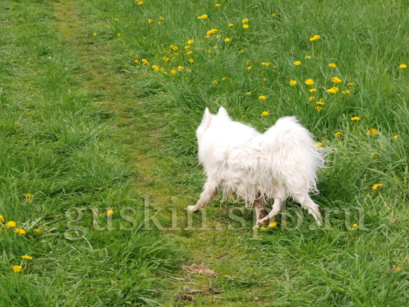 Так и не случилась у нас фотосессия в одуванчиках. Зато случилась очень довольная собой собака. Кувыркалась в пыли, вытирала нос о траву, скакала по грязи — в общем, жила полной жизнью. Винсик, конечно, был великолепен, как всегда. Он-то в речку не падал, а если бы и упал, ничего страшного с его внешностью не случилось бы. В итоге вместо Белочки в одуванчиках фоткался Винсент.