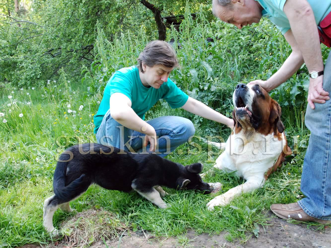 Часть первая Яшмино лето Было лето. Была маленькая Яшма. Яшме было три месяца, и было у Яшмы два развлечения, одно лучше другого: кусаться и донимать Винсика. Кусаться получалось очень здорово; видно было, у Яшмы к этому делу талант. Или призвание. Попробуй, пофотографируй такую. Фотоаппарат тоже был покусан, хотя Яшма всё-таки предпочитала предметы одушевленные: они так забавно визжат и дёргаются! Но всё равно фотографировали, конечно, — нужно же было отчитываться перед финской хозяйкой... Конечно, фотографировать приятнее Винсика. Ну как не сделать классическую фотку с ушами по сторонам, пока Яшма в сторонке ест кого-то другого! Или запечатлеть Белку, которая уважать себя заставила раз и навсегда и теперь могла спокойно принимать солнечные ванны. Впрочем, Яшма не могла допустить, чтобы мы успели по ней соскучиться. Программа почёсываний Винса была очень сокращена. От Яшмы приходилось буквально отбиваться, и понятно, это не могло продолжаться сколько-нибудь долго. Небольшая драка только придавала Яшме ускорение — и возвращалась она в два раза быстрее, чем убегала. Так Винс и ходил недопочёсанный, зато неотвязно сопровождаемой длинноногой красоткой из хорошей семьи. Но самое печальное было даже не сокращение почёсываний. Яшма почему-то решила, что всё, что ей хочется, она может взять. В том числе, Винсову косточку. Конечно, пока косточка надёжно упрятана за сенбернарскими щеками, Яшма ничего не могла с этим поделать, но если Винс косточку выкладывал хоть на минуту... Винс рыкнул: ну ничего святого у этой мелкой нахалки! Яшма не слишком расстроилась: подумаешь, рычит... три ха-ха. Главное - не терять надежды! Бедный Винсик жаловался нам — безмолвно, но очень выразительно. Но всё, что мы могли, — выразить ему сочувствие. Совершенно обнаглевшую зверушку пытались воспитывать. Но и это не особо расстраивало. Повоспитывают - и перестанут, а мир так прекрасен и удивителен! 5 октября 2011