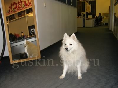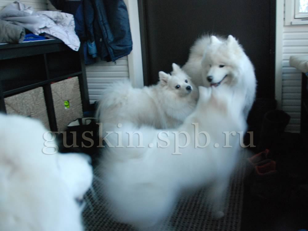 Яшма тискалась с нами и пребывала в восторге. Белка шакалила. Ходили гулять. Гостям из Питера с непривычки было очень-очень холодно: до нас зима тогда ещё не дошла. А ещё очень непривычно, что Анне так легко отпасает Яшму бегать, куда угодно... она сначала выпускат собаку из дома, а потом одевается, а забора-то нет никакого вообще... Мы всю дорогу с собак глаз не спускаем, а там, за бугром, оно как-то попроще... Яшма не уставала пребывать в восторге. Белка всего происходящего не одобряла. Когда пришли домой, она улеглась на проходе с самым мрачным видом. Однако звук открывающегося холодильника (совершенно интернациональный, замечу) быстро возвратил ей бодрость и оптимизм. Конечно, ездили в гости к Сюзанне. Там Белочка встретилась со своей нянькой Хелми и с новыми собаками Сюзанны: японским шпицем Раухой и самоедочкой Сейлой. Состоялась ещё одна прогулка по морозу с совместным фотографированием. Вечер прошёл штатно: кто хотел, тискался, кто хотел, шакалил… Мы уезжали с полной уверенностью, что уж у Яшмы-то все перемены к лучшему. Как и должно быть у молодой собаки, у которой всё впереди… 17 августа 2012Рассказ о поездке в Финляндию, написанный по горячим следам, а также больше портретов Яшмы и собак Сюзанны можно найти в дневнике.