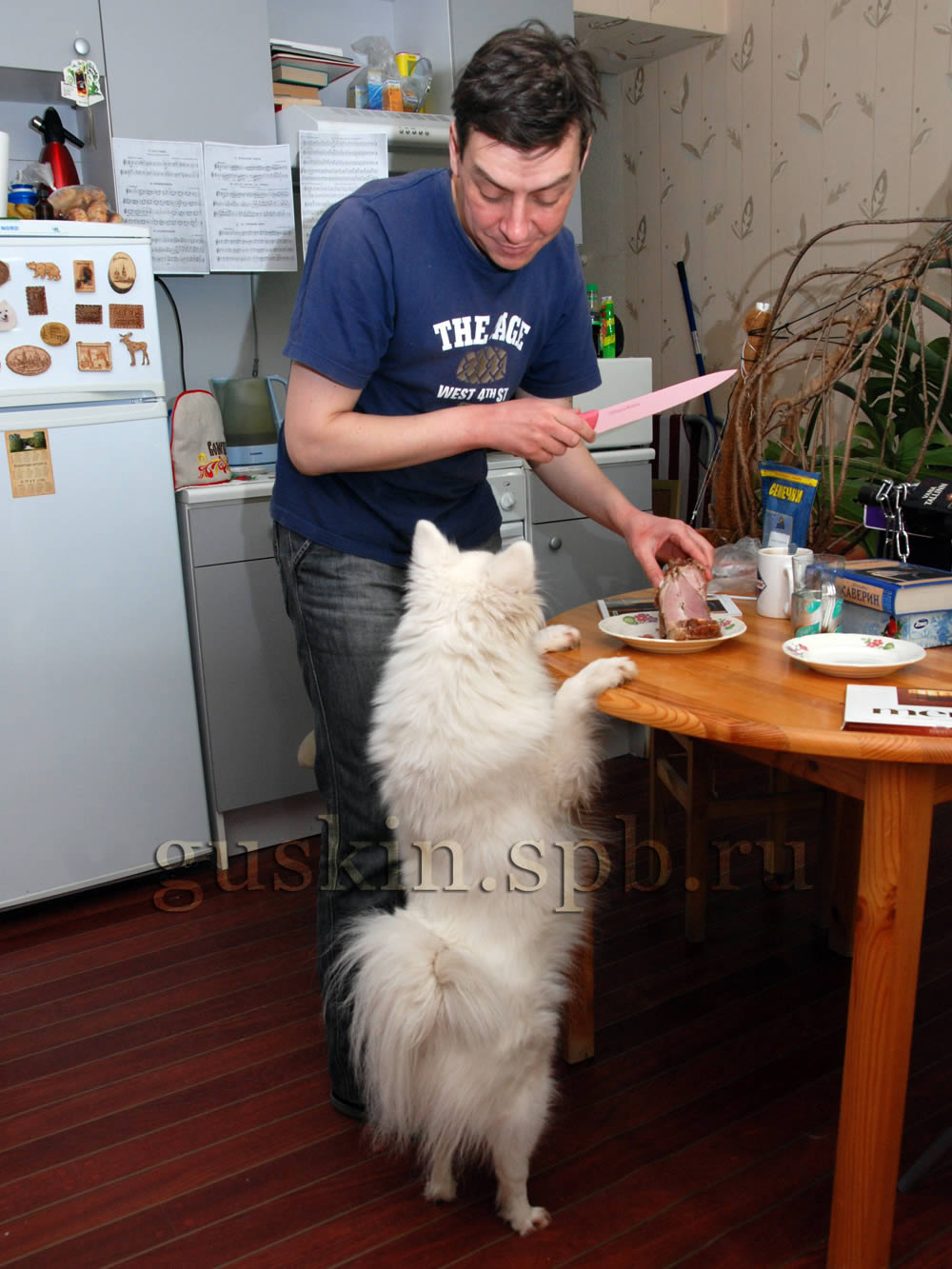 Слава натирал Винса снегом: это называется, «помыть собаку». Винса мы, признаться, не моем — ну вот так хотя б, для очистки не столько собаки, сколько совести. Винс не очень понимал, что это делают и зачем. Но хозяин сказал, надо… Зимой он и так чистый, на самом деле. И ему очень нравится гулять по снегу. Белке же нравится хорошо кушать. Вот я принесла вкуснейшую буженину, приготовленную моим другом и коллегой — и угадайте, кто первый в очереди на дегустацию.