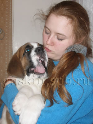 Растём мы ОФИГЕННО быстро. Сейчас Винсу 5,5 месяцев, и весит он около 55 килограмм. 15 января он весил 8 килограмм. С тех пор его вес в десятках килограмм примерно равен (чуть отстаёт) его возрасту в месяцах. Рост сенбернара — это что-то невероятное...