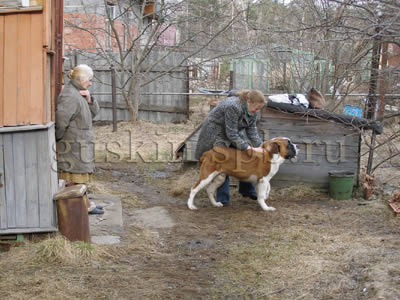 Сенбернар — не овчарка. Его нельзя гонять насильно: не его стиль. При больших физических нагрузках страдают, в частности, сердце и лапы, а не в частности — я вообще не спец. Конечно, прогулку шагом, даже быстрым шагом, я не считаю большой нагрузкой. Однако идеальные условия для сенбернара — свободный выгул. С этим нам повезло, всё-таки за городом живём. Двор большой... да и дом немаленький по сравнению с квартирой. Но ставка делалась на двор: понятно, что бабушка не сможет носиться с Винсом по улицам быстрым шагом. Мы же приезжаем только 3-4 раза в неделю. Свободный выгул спасёт нас — и мы скрестили пальцы.