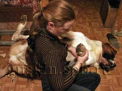 После праздничного обеда были, конечно, ещё более праздничные почесушки. Винс блаженствовал. Столько удовольствий сразу — и почему бы это? Не знаю, может, Винсик решил, что такое счастье теперь навсегда, но... День рождения кончился, и мы уехали домой, оставляя с бабушкой теперь уже годовалого сенбернара... 30 декабря 2006